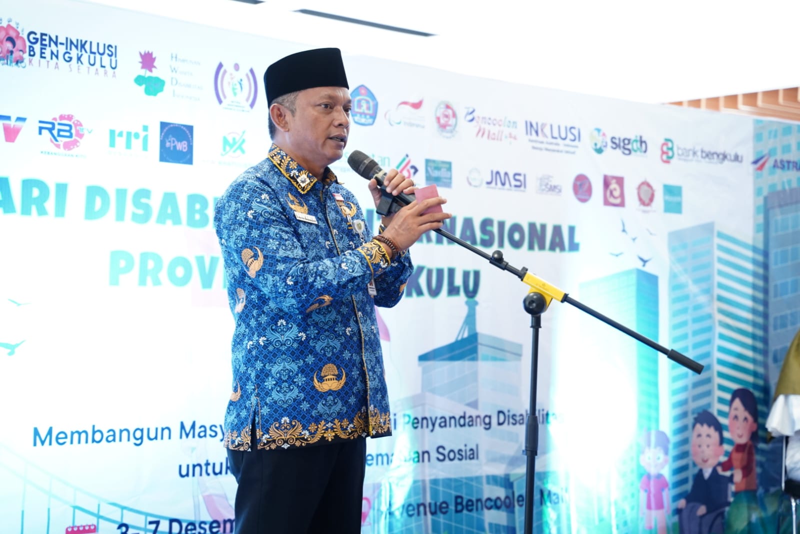 BENGKULU – Wakil Gubernur Bengkulu, Mian, secara resmi membuka pelaksanaan Peringatan Hari Disabilitas Internasional (HDI) yang digelar di salah satu pusat perbelanjaan modern di Kota Bengkulu, Rabu (3/12).